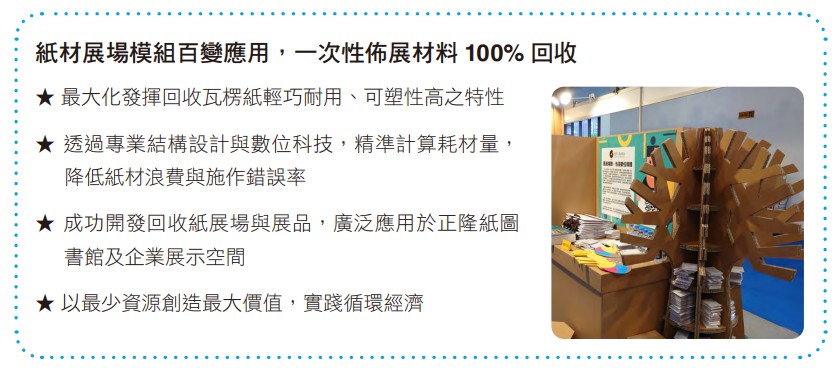 此外,針對大型電商倉儲,正隆創新研發多款環保貨架隔板與檢貨箱,全產品採100%紙材製造,可快速組裝並靈活調整尺寸,獲國際知名電商品牌採用。這些創意開發不僅可減少資源消耗,更能助電商業者在倉儲管理中降低對塑膠的依賴,推動供應鏈減碳、跟上全球綠色倉儲趨勢,打造更具競爭力的永續物流體系。